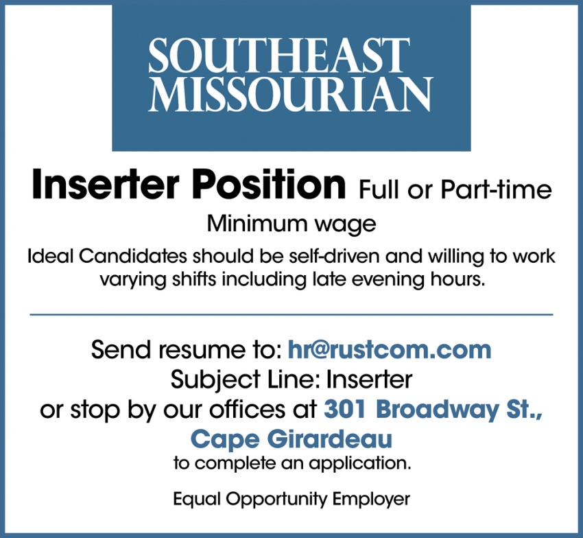 Inserter Jobs Near Me in Cape Girardeau, MO
