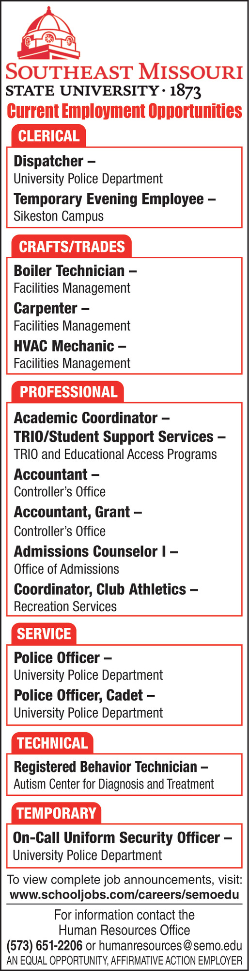 Oct 11, 2025. Southeast Missouri State University General Jobs from Southeast Missourian Jobs