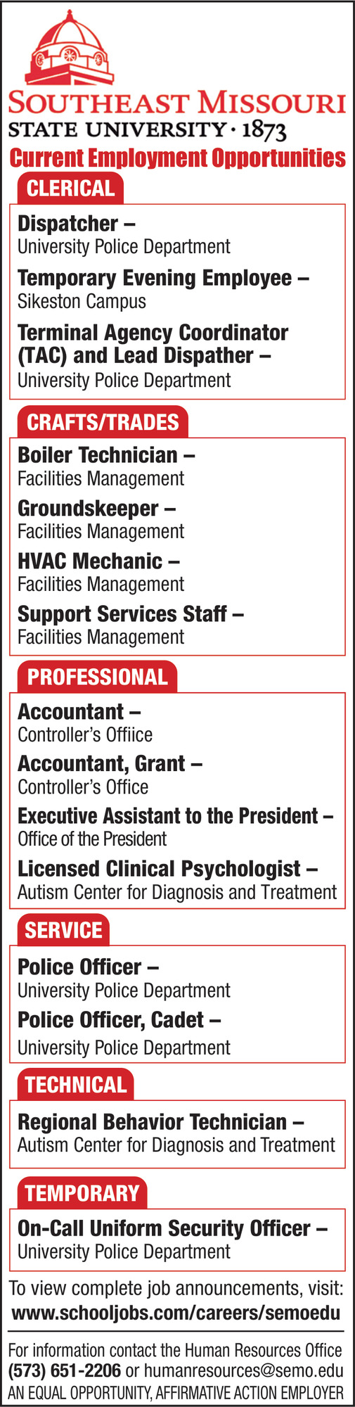 Nov 08, 2025. Southeast Missouri State University General Jobs from Southeast Missourian Jobs