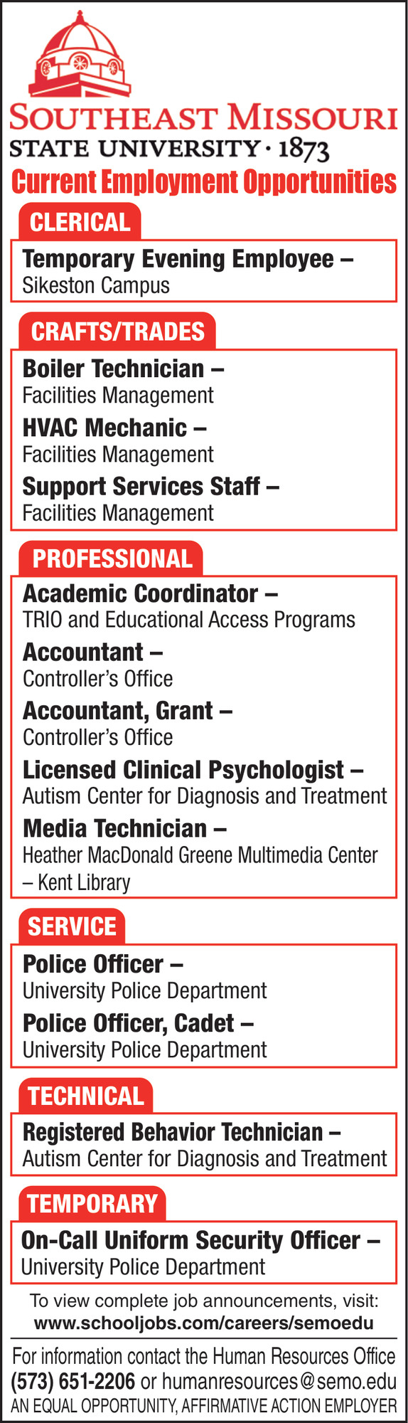 Dec 13, 2025. Southeast Missouri State University Employment Jobs from Southeast Missourian Jobs