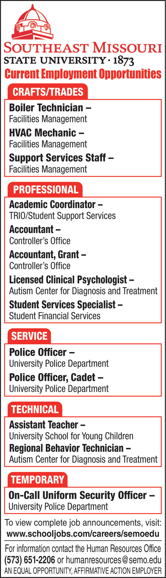 Dec 20, 2025. Southeast Missouri State University General Jobs from Southeast Missourian Jobs