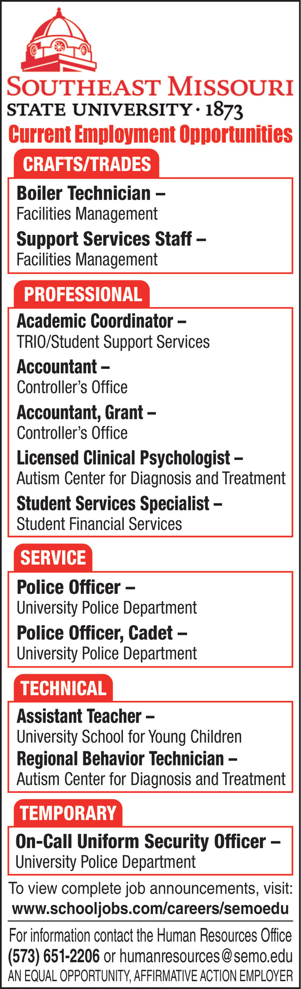 Dec 27, 2025. Southeast Missouri State University Employment Jobs from Southeast Missourian Jobs