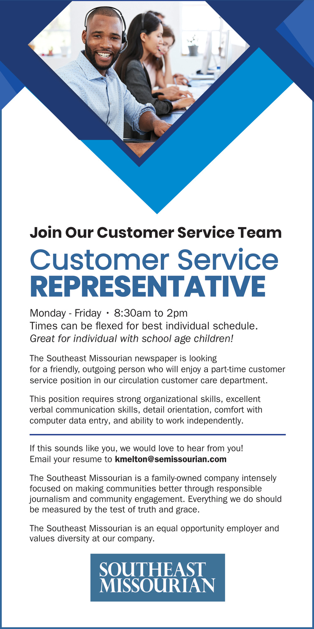 Feb 11, 2026. Southeast Missourian Customer Service Jobs from Southeast Missourian Jobs
